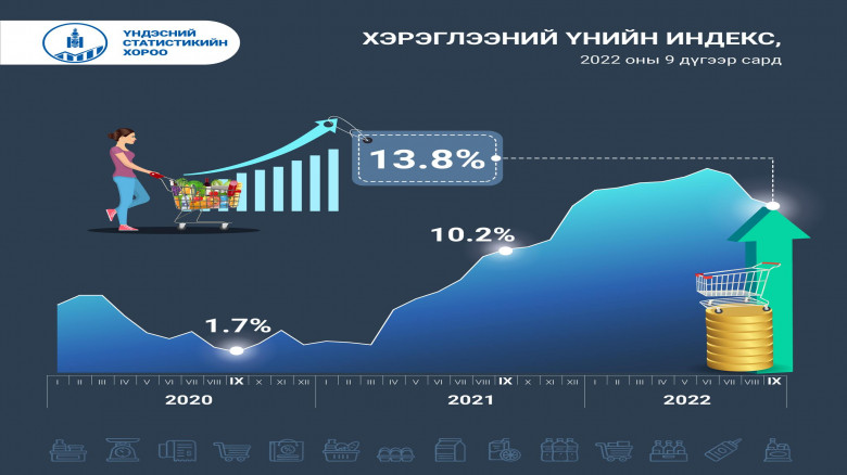 Есдүгээр сард инфляц 13.8% болж суларчээ...